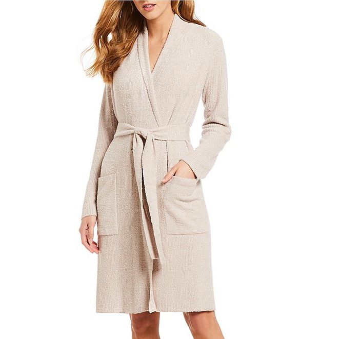 Wrap yourself in effortless luxury with this ultra-soft ribbed robe, crafted from our signature CozyChic Lite fabric for year-round comfort. Thoughtfully designed for elevated lounging, it features a fold-back shawl collar you can drape open or wrap across your body for extra warmth and coverage. A cleverly engineered center back channel keeps the removable belt secure—no more slipping, bunching, or hunting for the tie. Clean lines and a flattering silhouette make it look as good as it feels, whether worn open or closed.