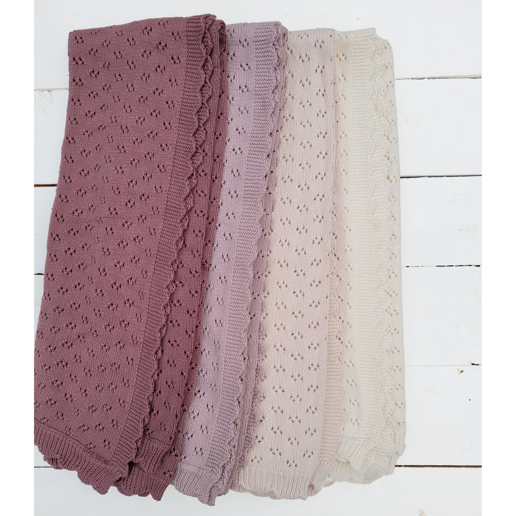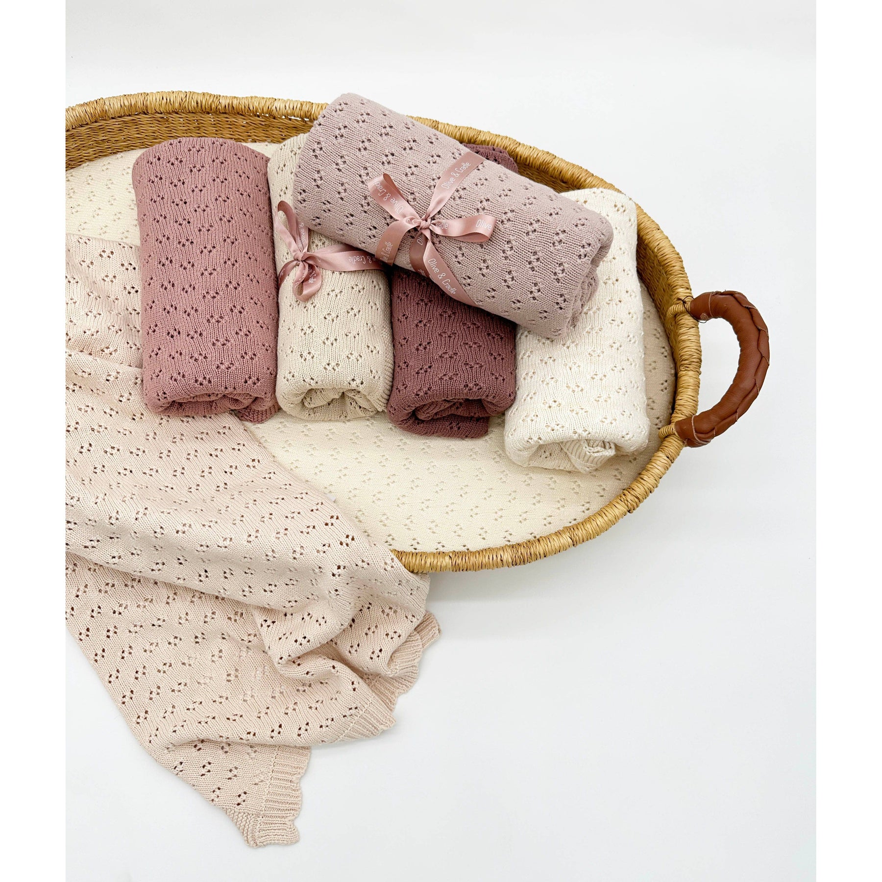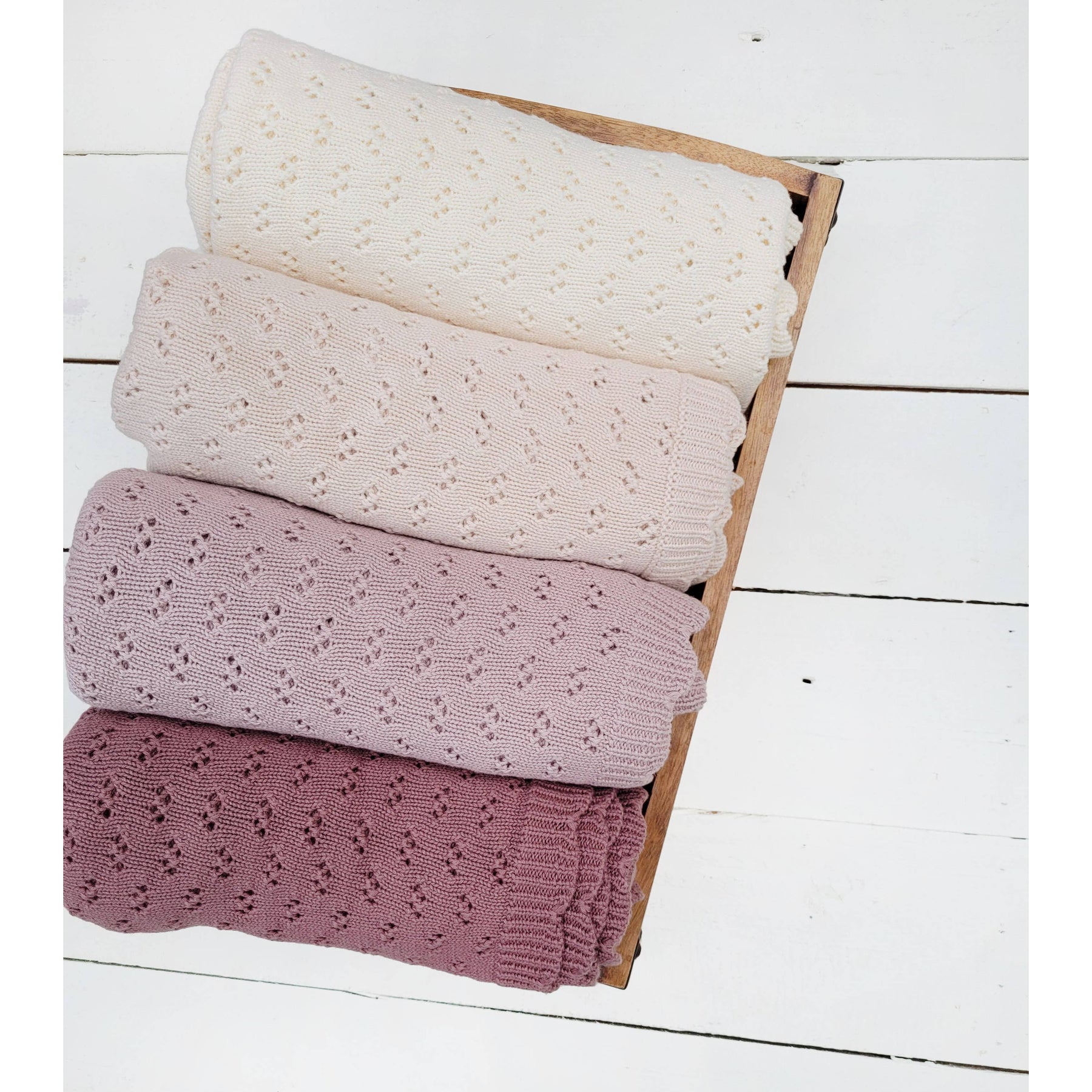 OLIVE & CRADLE - Baby knitted cotton Crib blanket baby lace knit Grace Cover