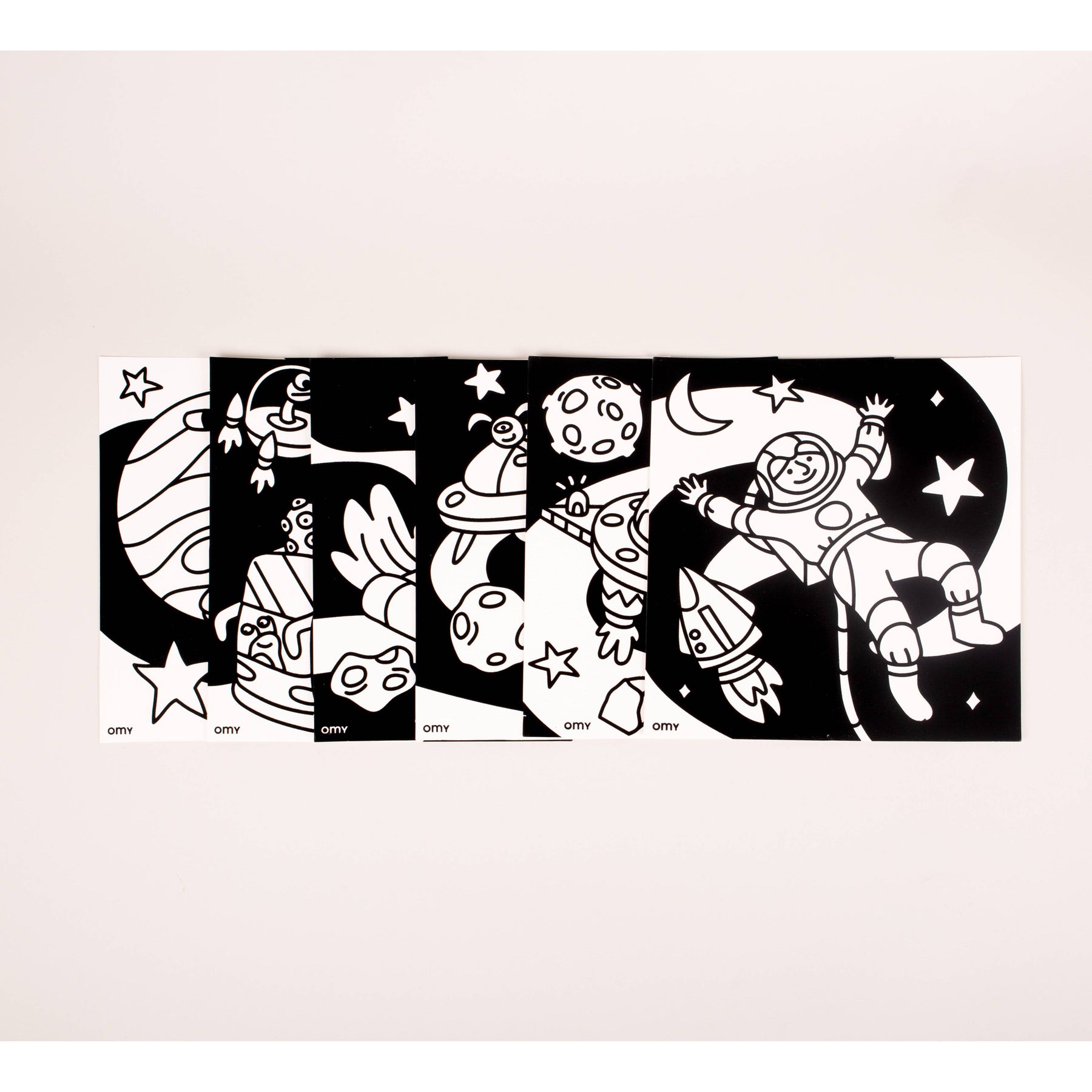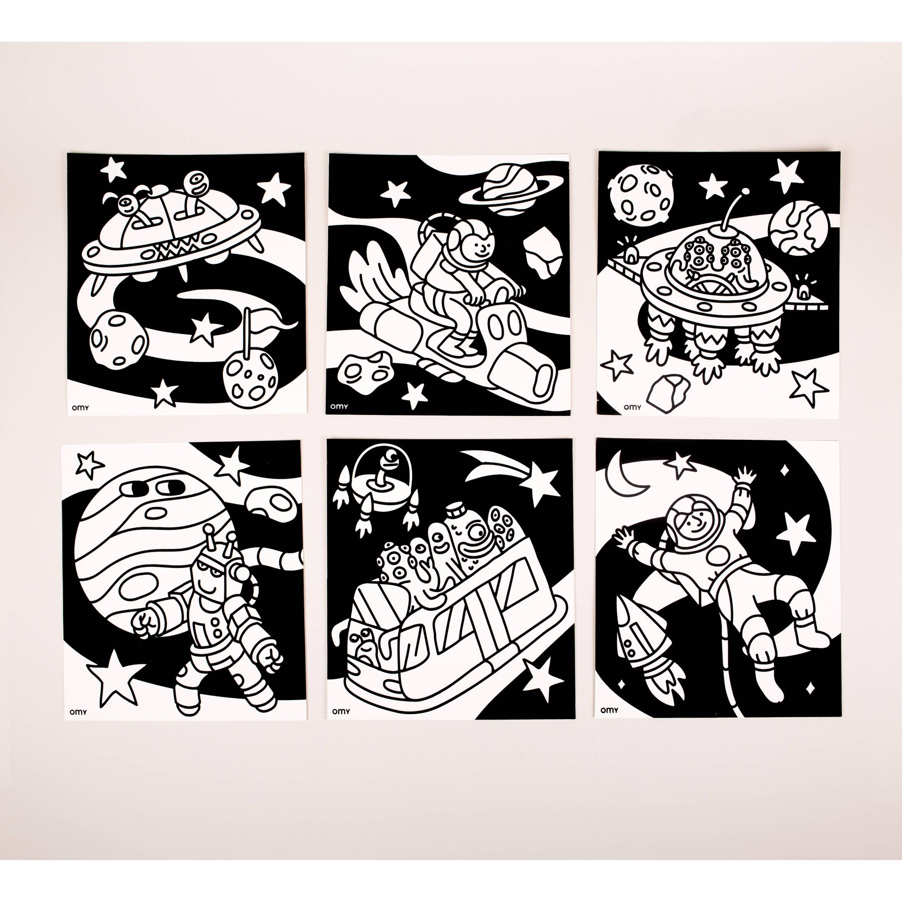 Head to the moon for the most beautiful trip to space. Discover the Cosmos universe throughout 6 velvet coloring sheets !