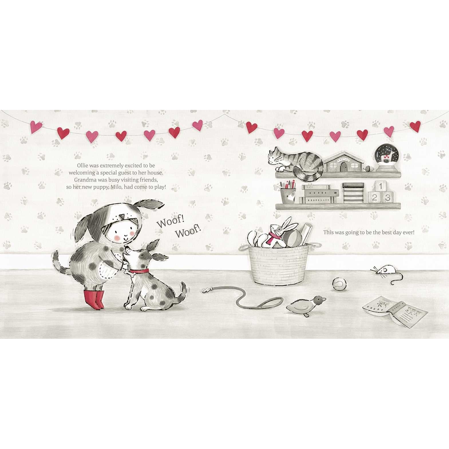 When Grandma comes for a special Valentine’s visit with her puppy, Milo, Ollie spends a special day playing with her new friend.