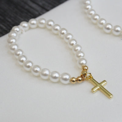 Marcela Gift Gold Cross Pearl Bracelet, 6mm