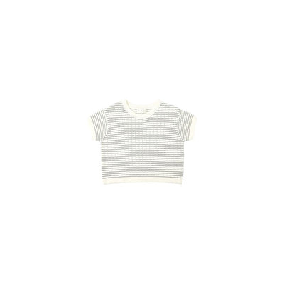 Rylee + Cru Boxy Crop Knit Tee, Dusty Blue Stripe