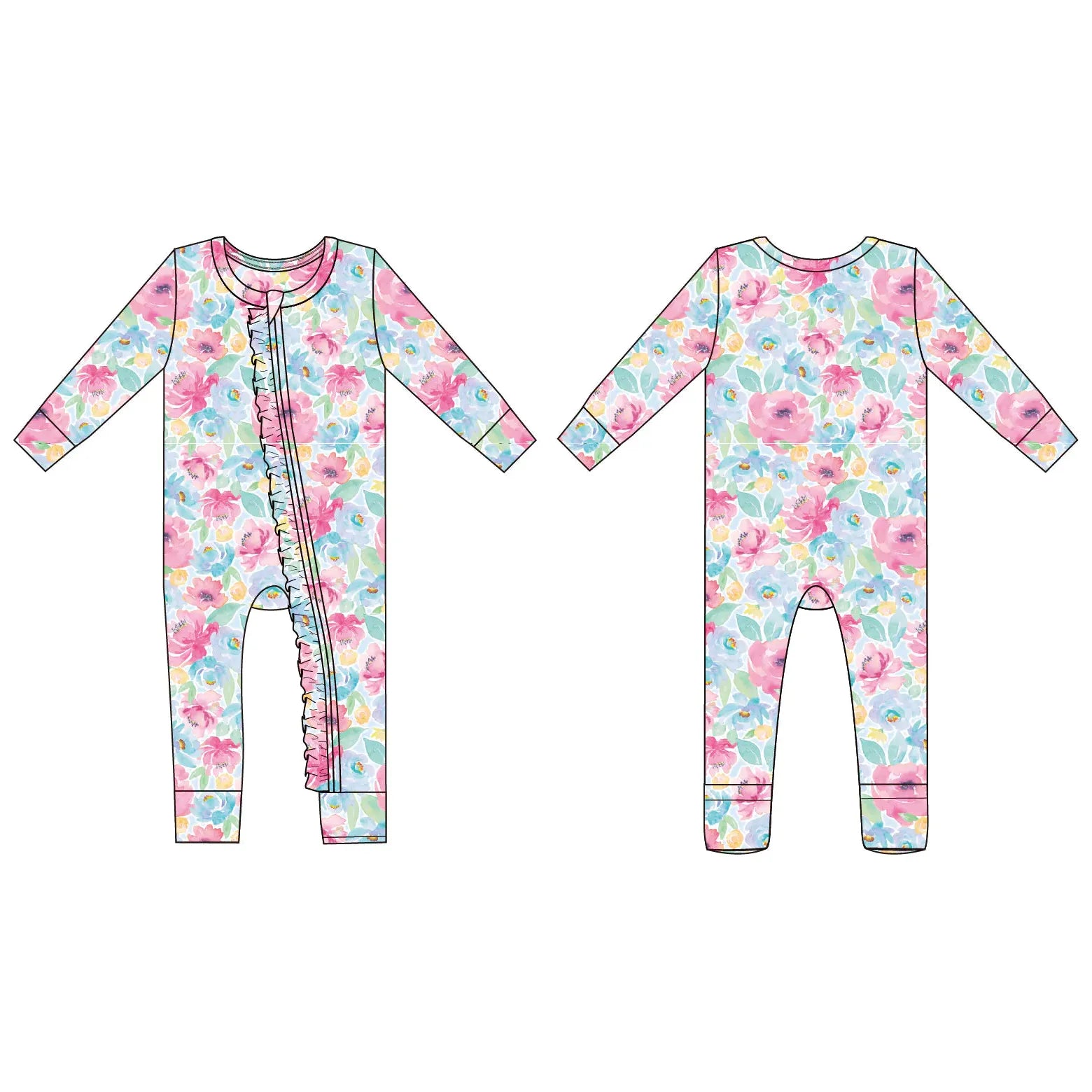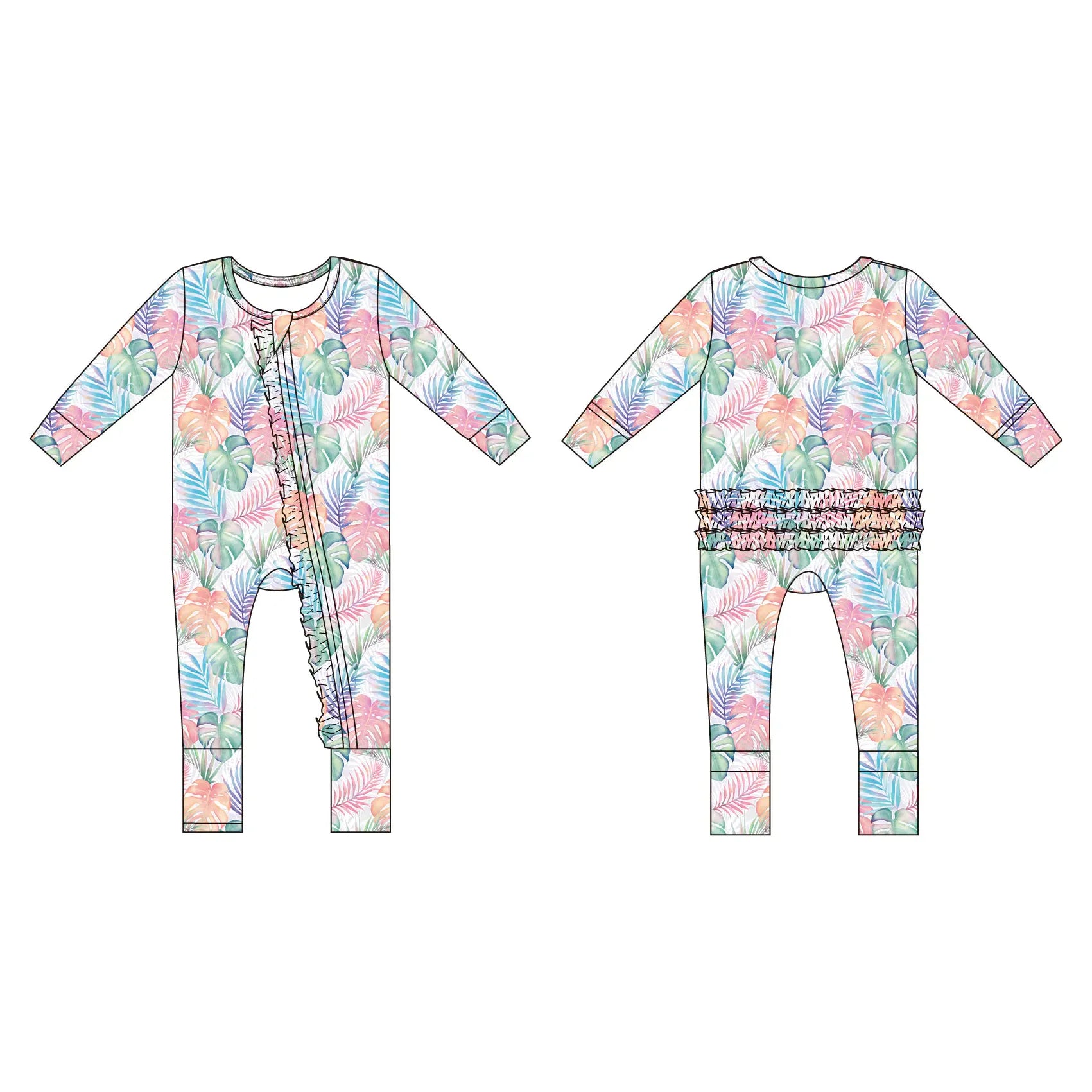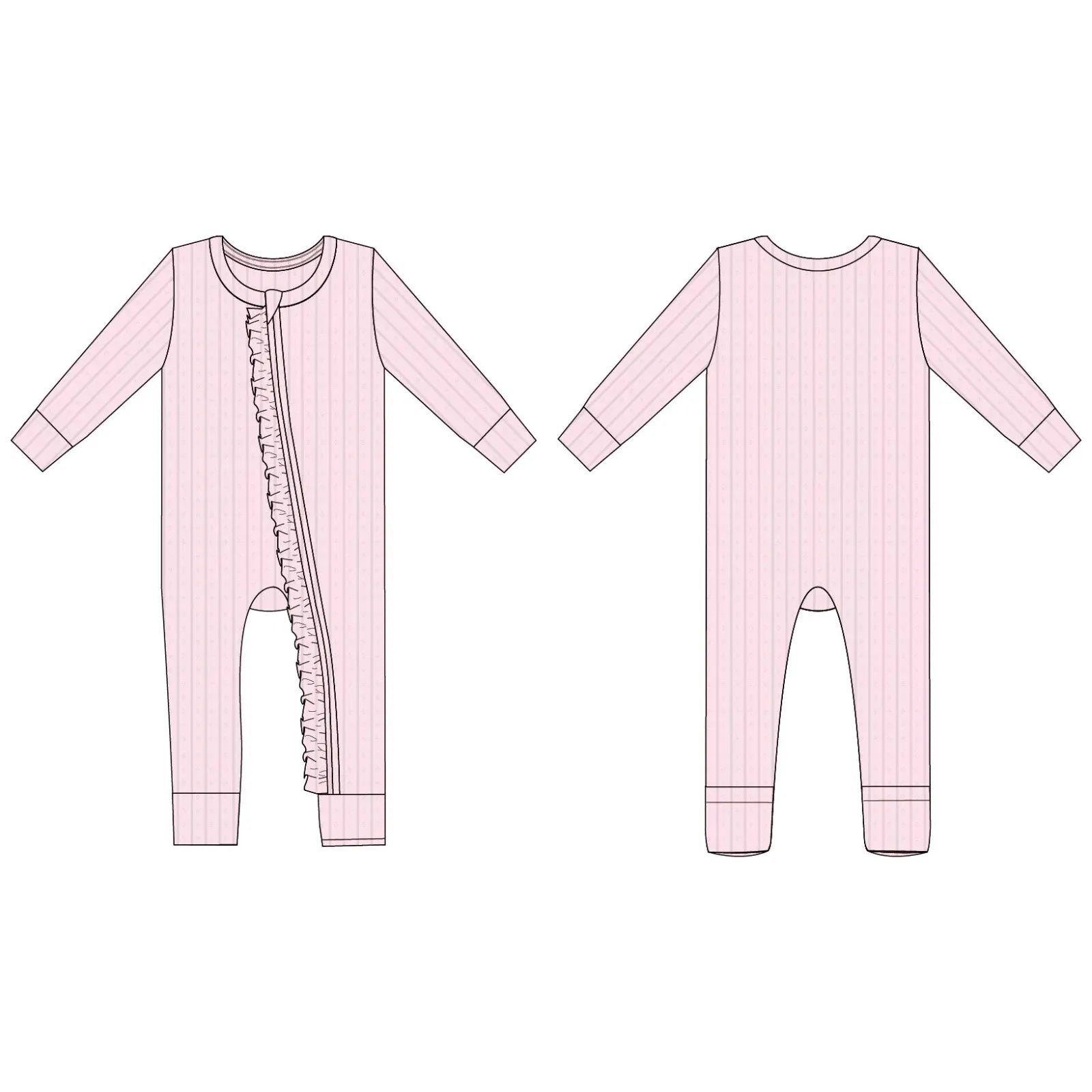 Get the best of both worlds with this convertible romper that easily transforms into a cozy footie with fold-over feet cuffs—perfect for naps, play, and bedtime. Crafted from irresistibly soft viscose from bamboo with a touch of spandex, it’s breathable, stretchy, and gentle for sensitive skin. A convenient 2-way zipper makes diaper changes quick and stress-free, while a tagless design keeps little ones extra comfortable. Sweet ruffle detailing adds an adorable finishing touch (ruffle placement and scale vary by size range).