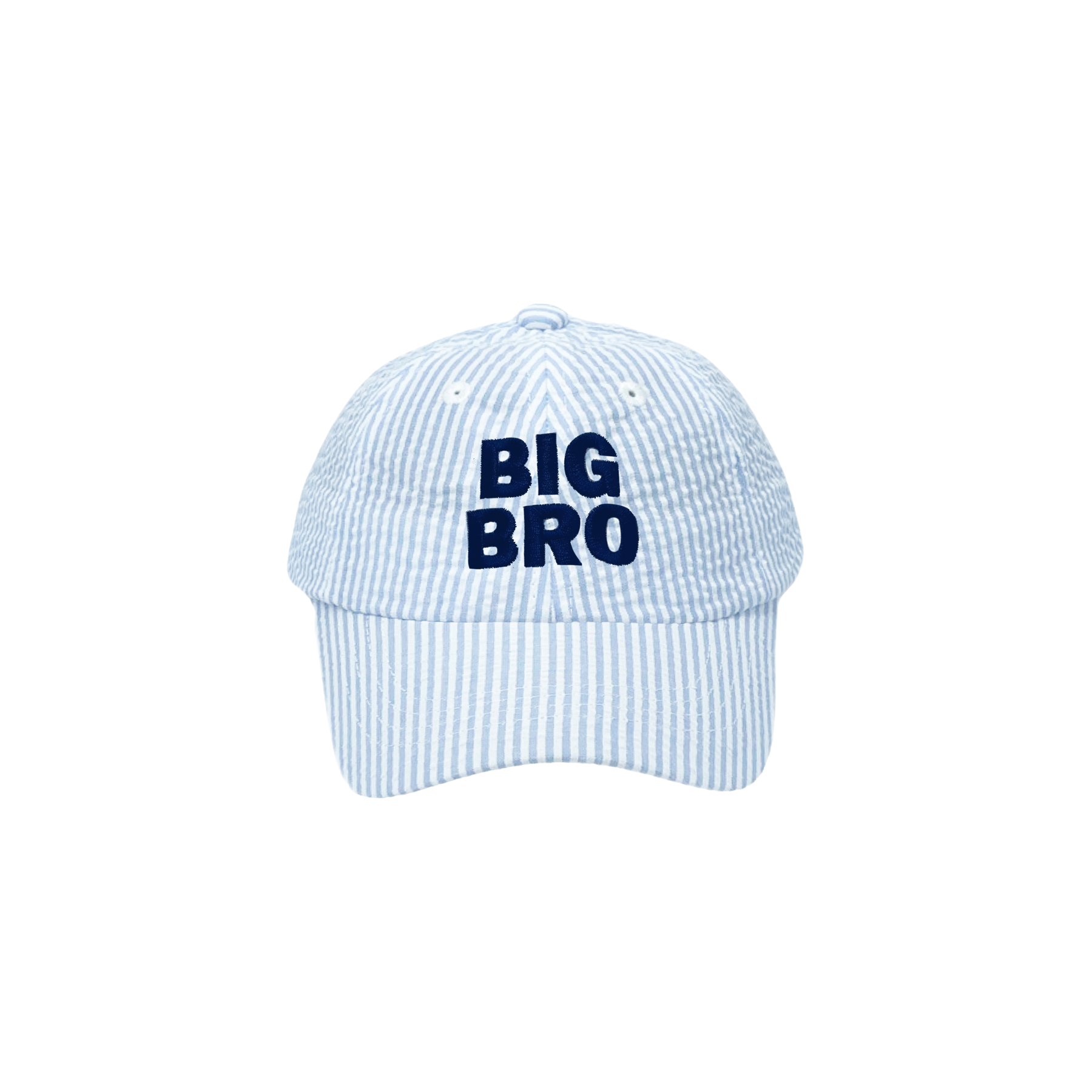 Blue/white seersucker baseball hat with "BIG BRO" embroidery