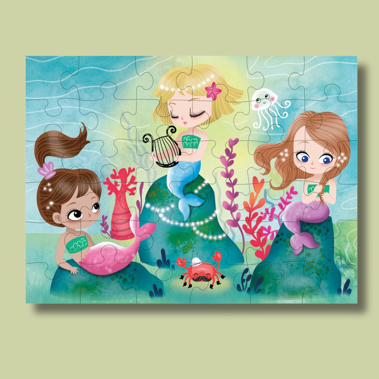 Easy Handling – Crafted with little hands in mind, the Mermaid Puzzle includes 36 thick, ribbon-cut pieces that are easy for kids to handle and assemble. The completed puzzle measures 12” x 9,” making it a manageable size for young puzzlers. Made responsibly, the greyboard contains 90% recycled paper, and the packaging is crafted with FSC-certified materials. Printed with non-toxic inks, this puzzle ensures safe and sustainable playtime.