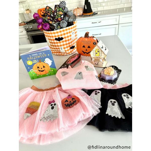 Halloween Sparkle Tutu. This enchanting layered mesh tutu is designed to make any Halloween outfit shine. The tutu features a dazzling sparkly lurex elastic waistband that ensures a comfortable and secure fit, allowing for easy movement during all your festive activities. Adorned with shimmering sequin icons, this tutu adds a touch of magic and whimsy to your ensemble. Crafted from 100% polyester, it offers durability and a lightweight feel, perfect for long hours of wear. Ideal for costume parties, trick-or-treating, or simply adding a festive flair to your wardrobe, this tutu is a must-have for anyone looking to stand out this Halloween season. Available in various sizes to suit all ages, it's the perfect accessory to complete your spooky or playful look.
