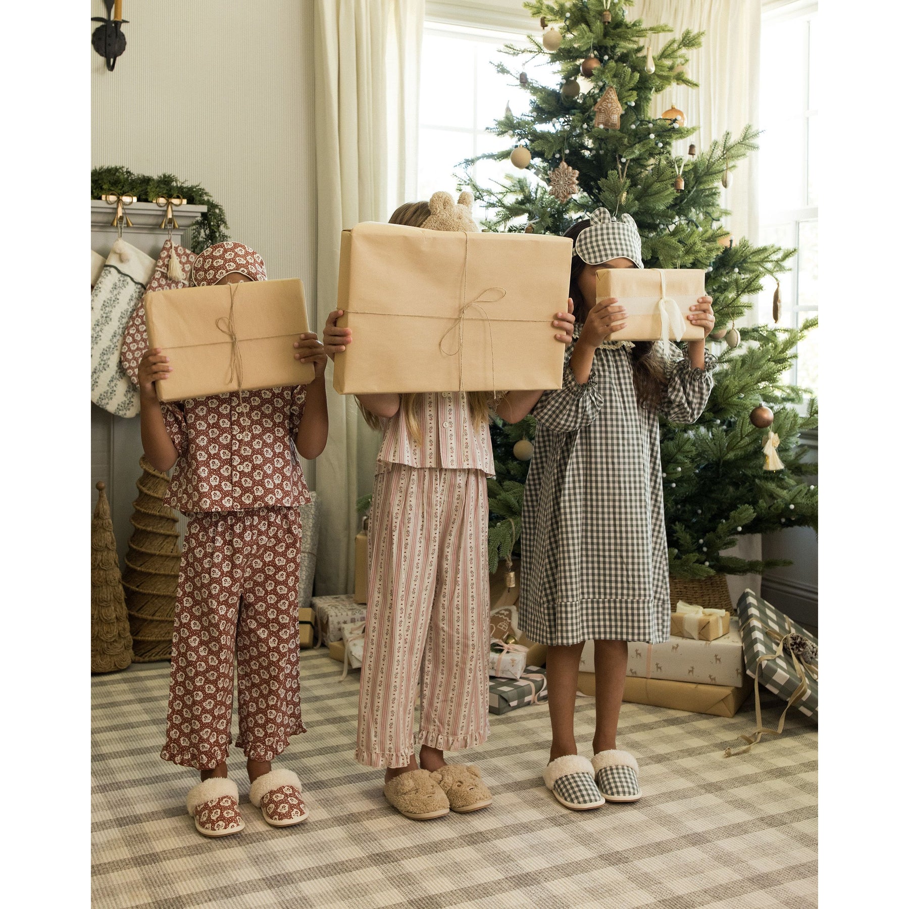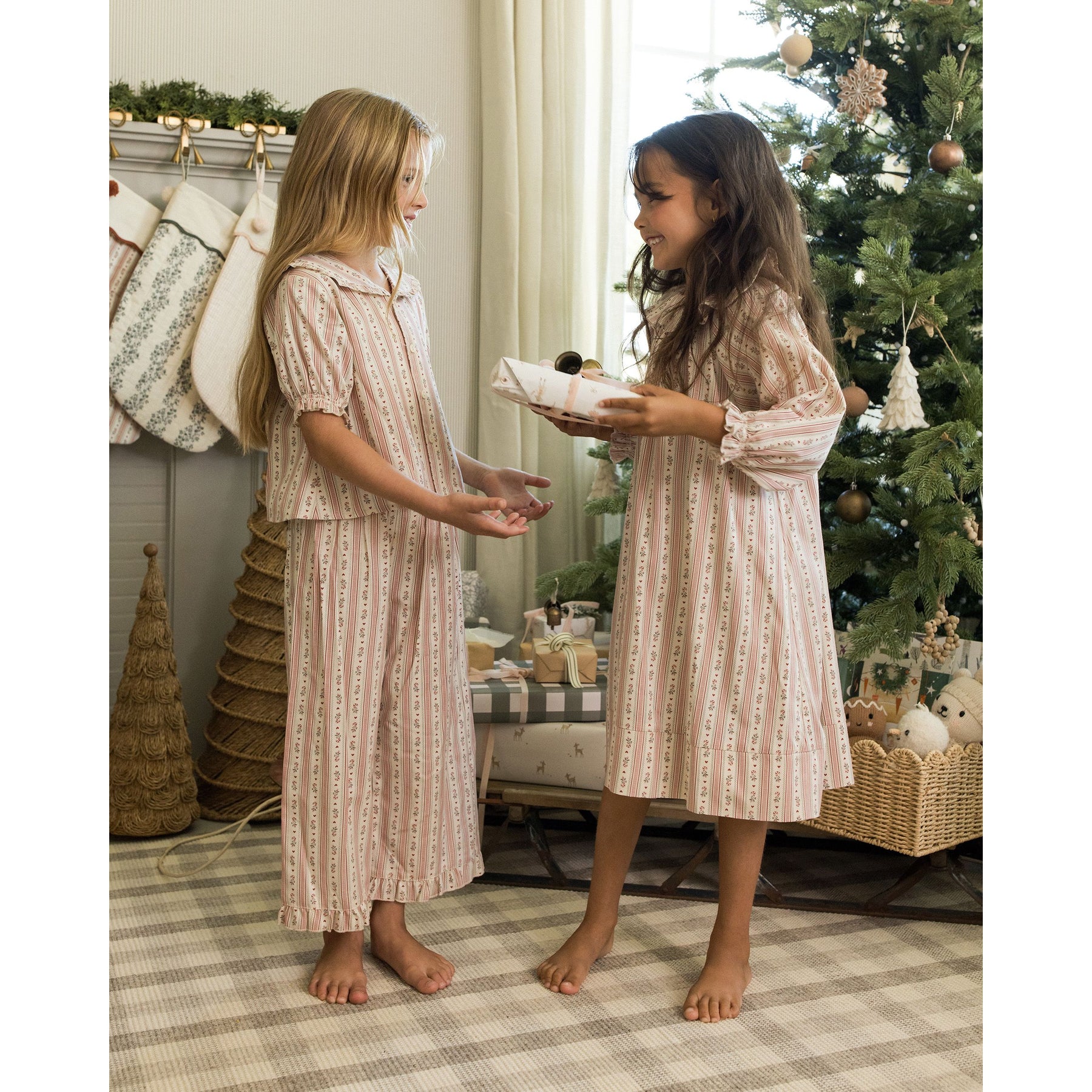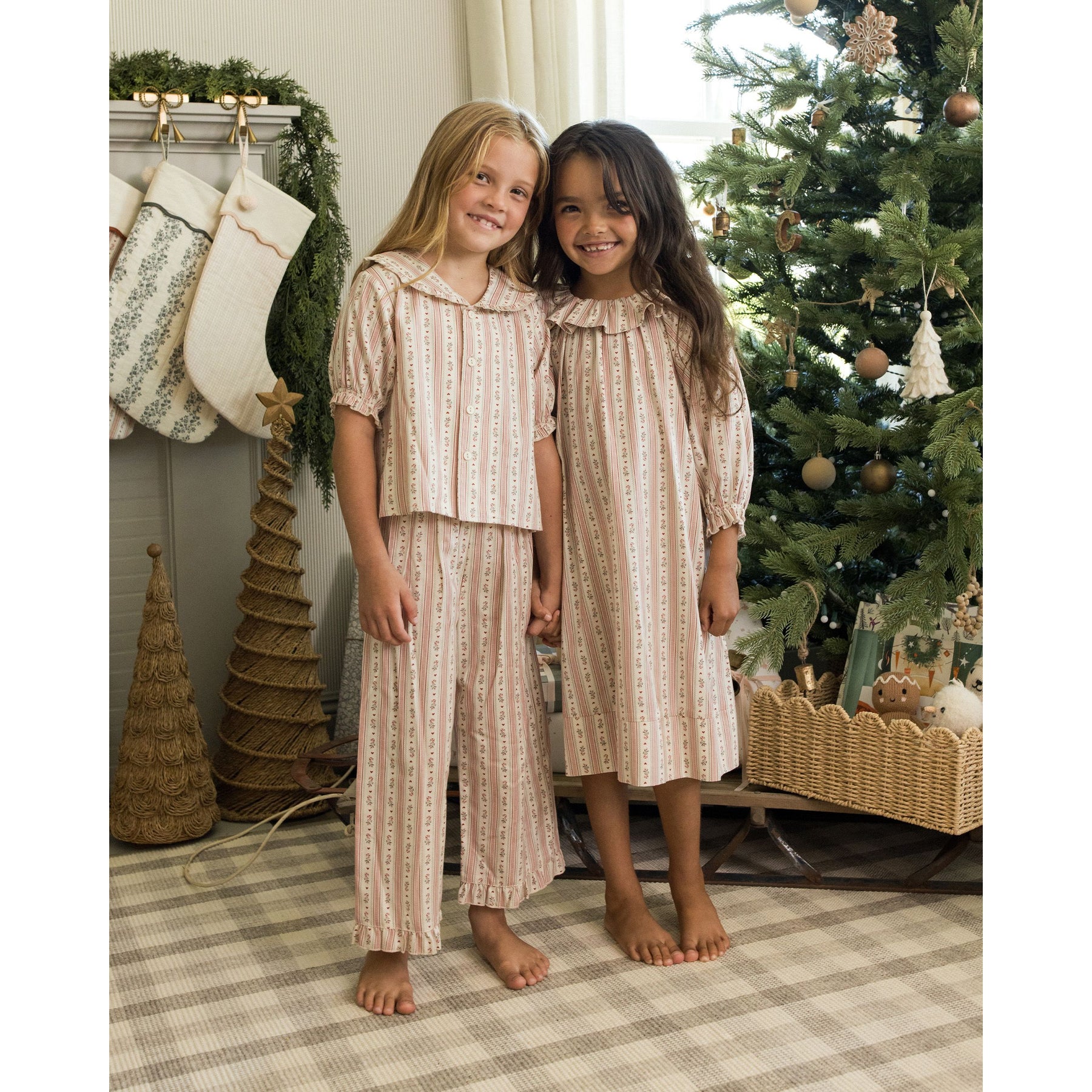 Our Ruffle Pajamas are the perfect blend of cute and cozy. This woven pajama set features a charming ruffle-collar top paired with wide-leg pants designed with an elastic waistband for maximum comfort. So soft and stylish, you’ll want to lounge in them all morning long!