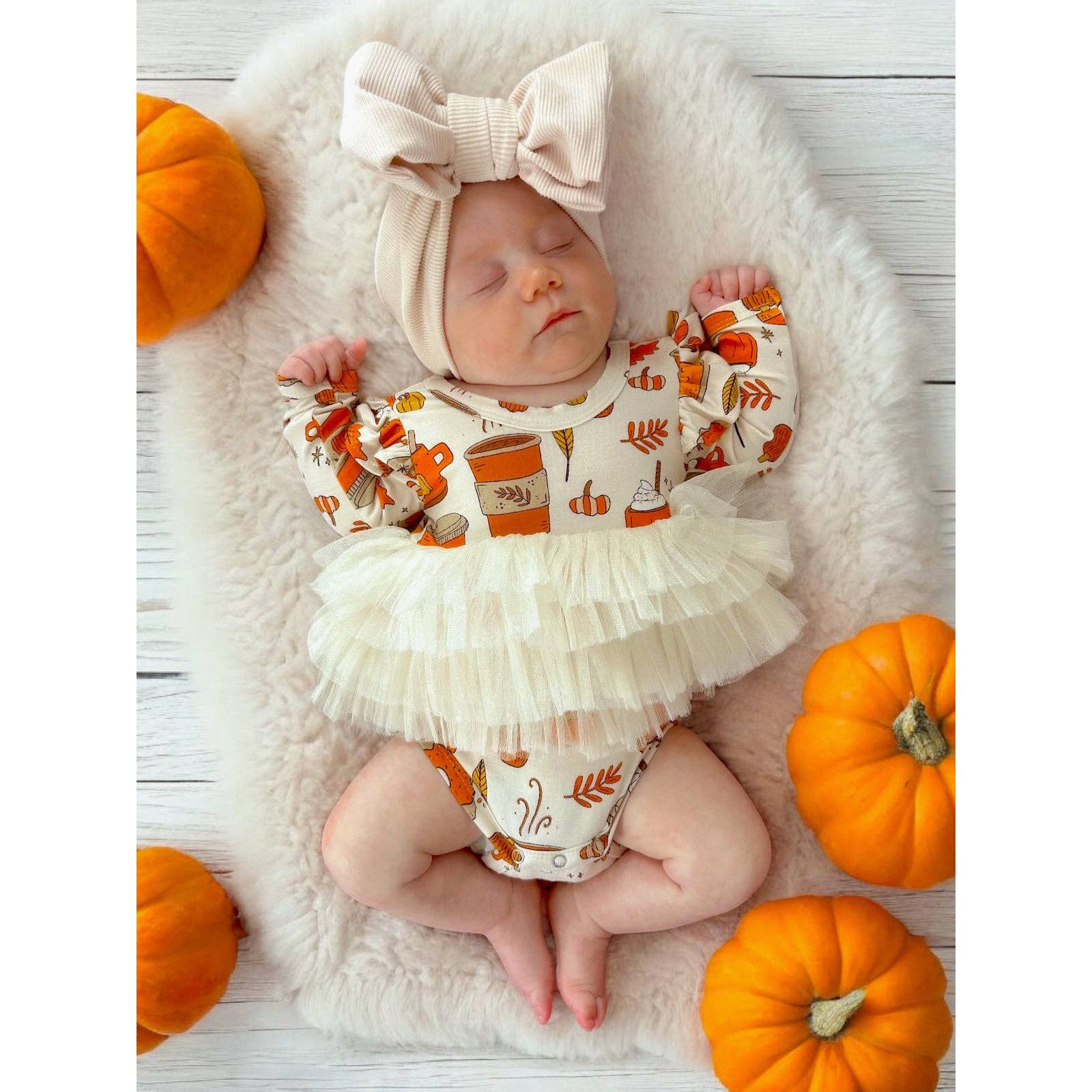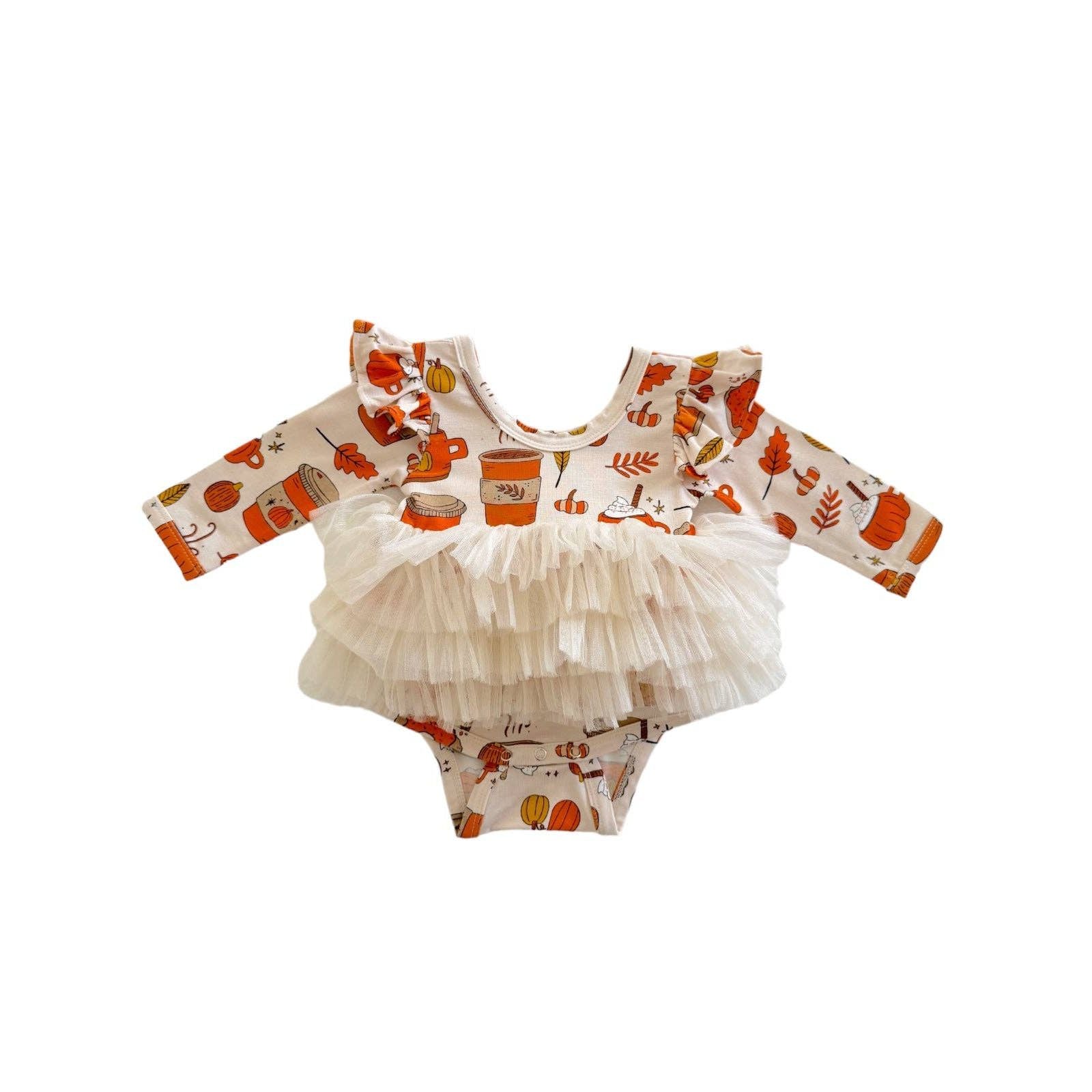 SpearmintLOVE - Long Sleeve Tutu Bodysuit, Pumpkin Spice Latte