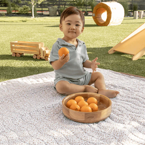 Introducing the Pretty Practical Playmat, the ultimate padded, splash mat for on-the-go families. Designed with an organic cotton top layer with water-resistant coating, this portable and convenient play mat provides a safe, diaper-free zone for your little one to explore.