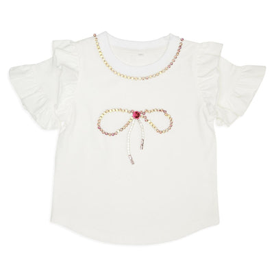 Mini Dreamers Sophia Crystal Bow Ruffle Tshirt, White