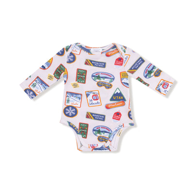 Angel Dear Vintage State Snow Sport Patche Shoulder Lap Bodysuit