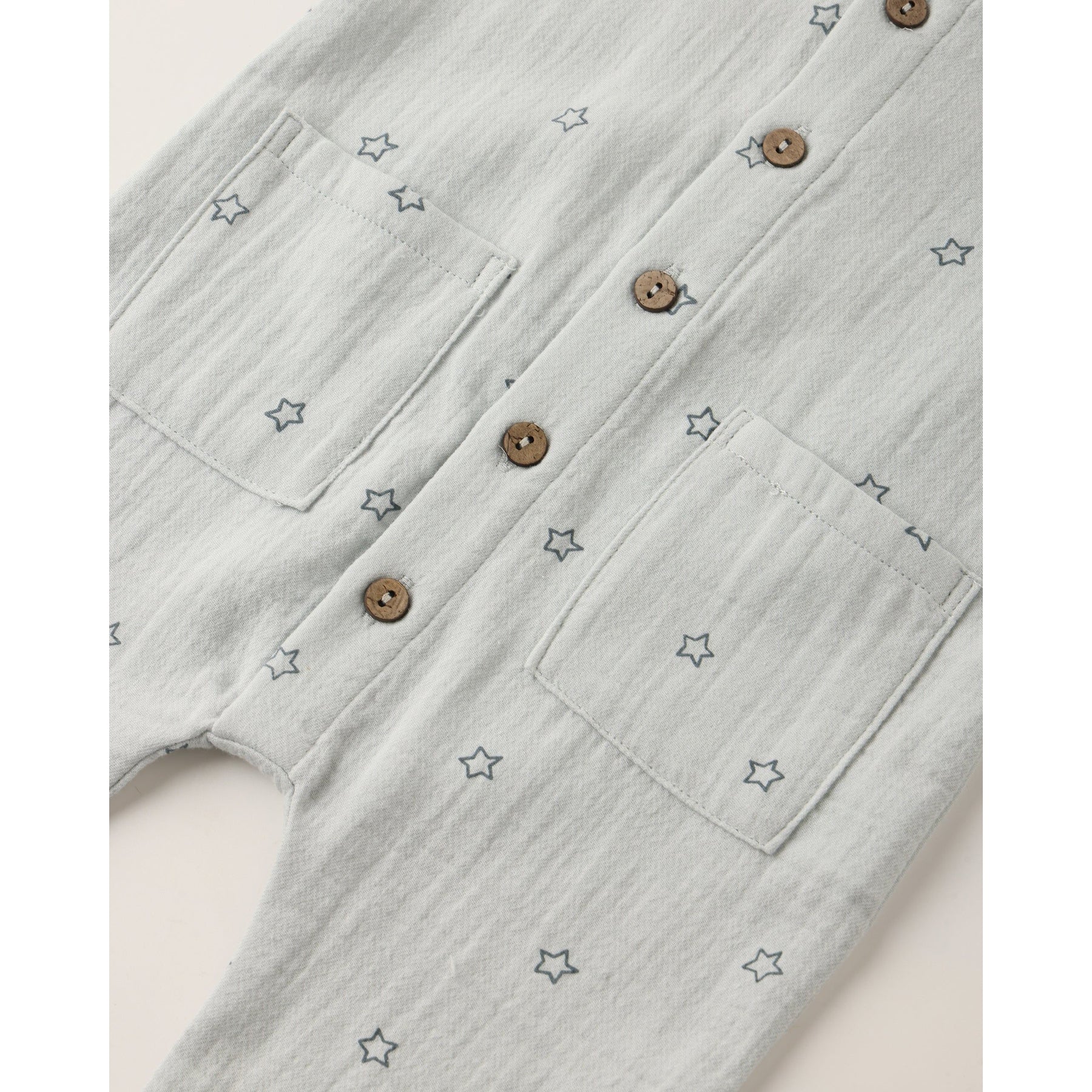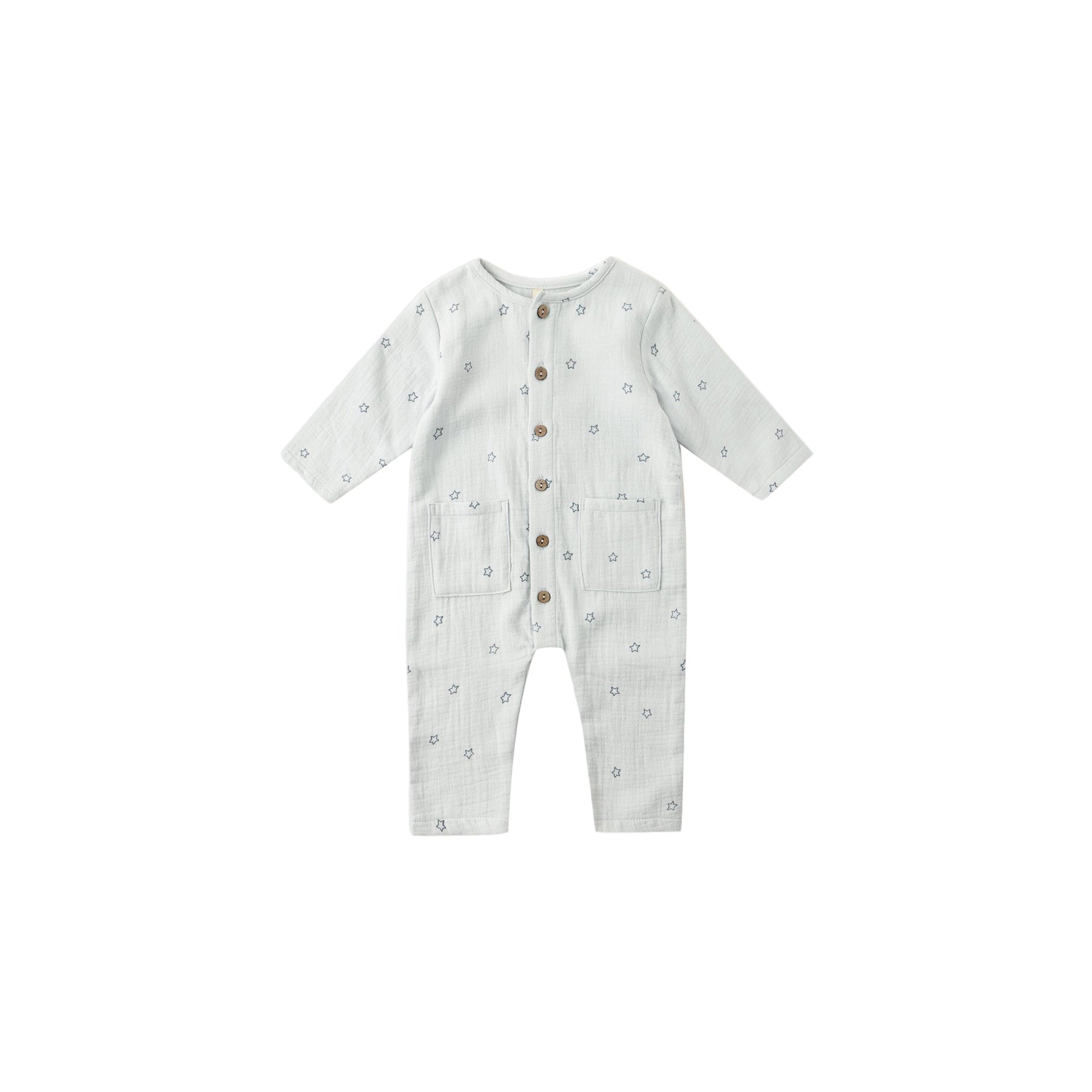 Made from soft organic cotton gauze, this darling jumpsuit features square patch pockets on the front and buttons down the center for easy changing - an everyday staple with timeless charm.