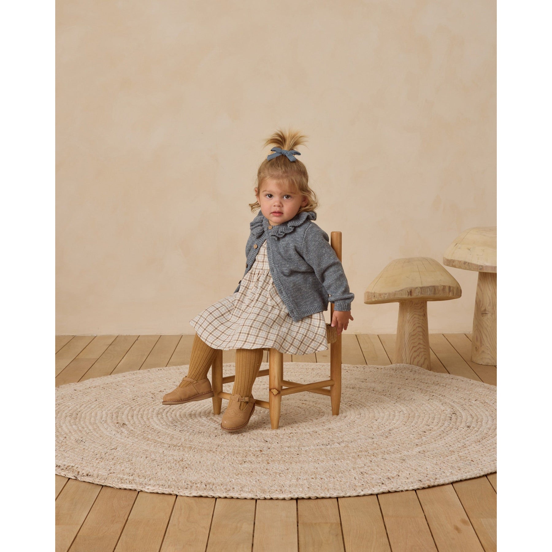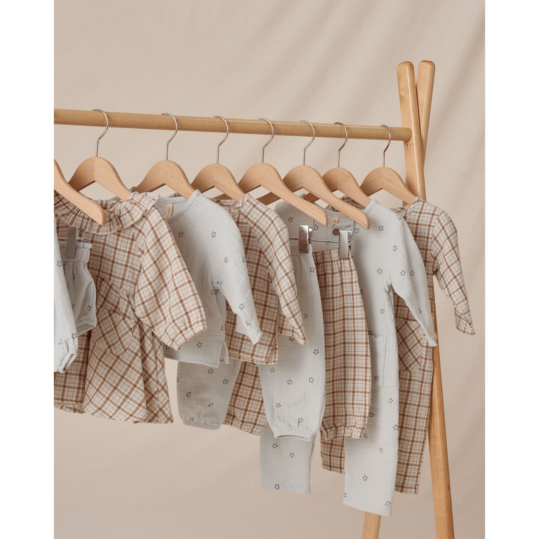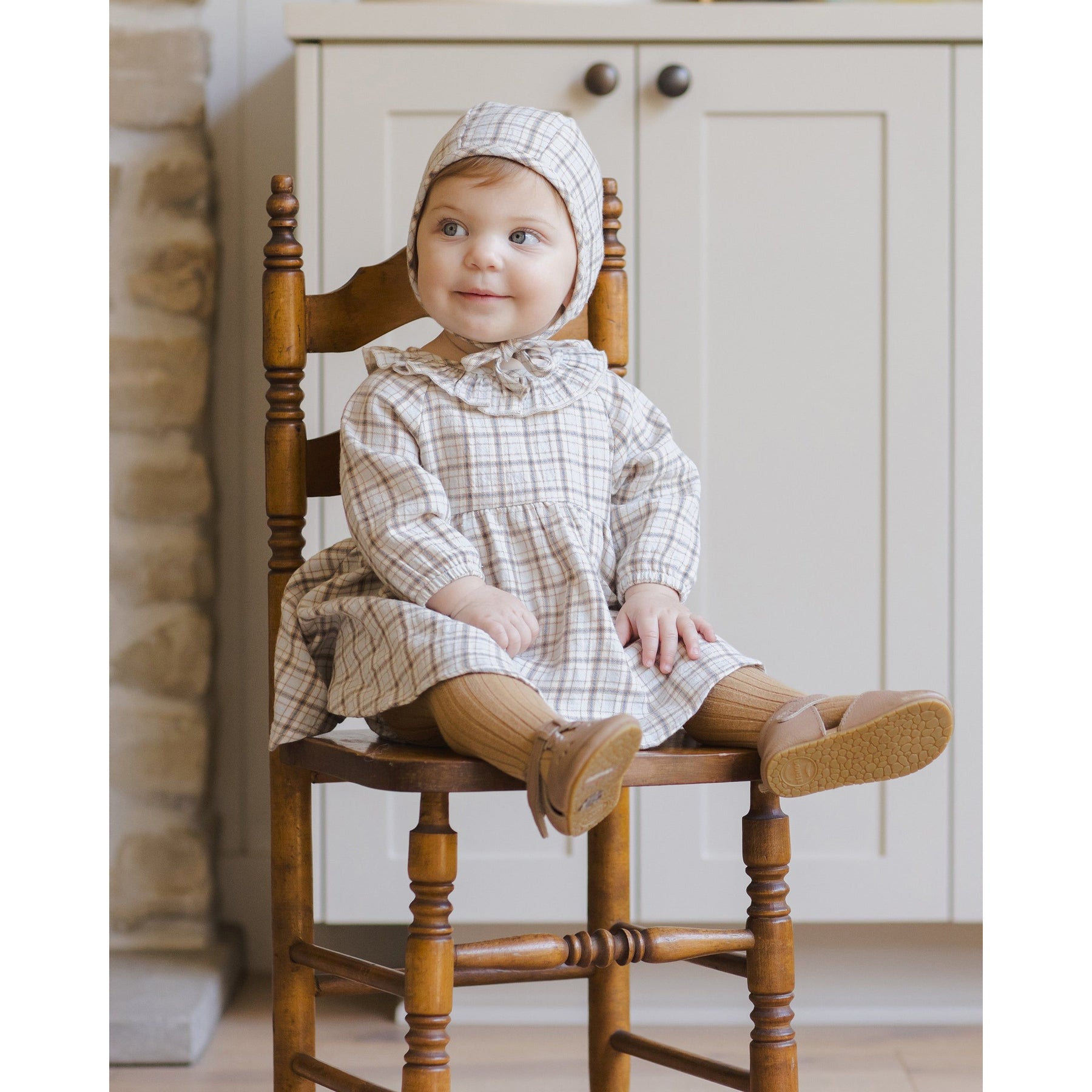 Our sweet Simone Dress features long sleeves, a curved waistline, front patch pockets, and a darling collar. A zipper at the back allows for easy dressing—perfect for everyday charm and comfort. Coordinating bloomers included with all sizes.