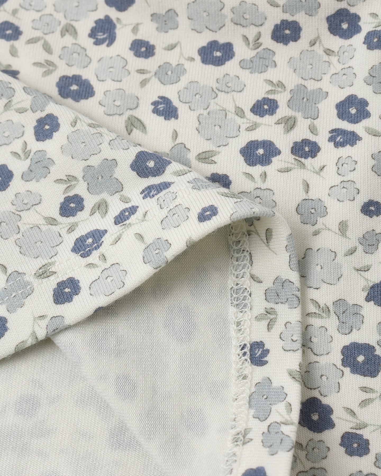 Featuring our ‘blue ditsy’ print on our 'ivory' hue. Beachy blue and warm sand hues make this floral print perfect for summer.