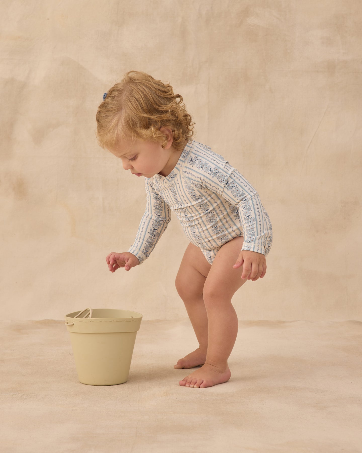 Our Delphine Rashguard One-Piece swimsuit will have your little one protected from the sun in style. Designed with a zipper back closure for easy wear.