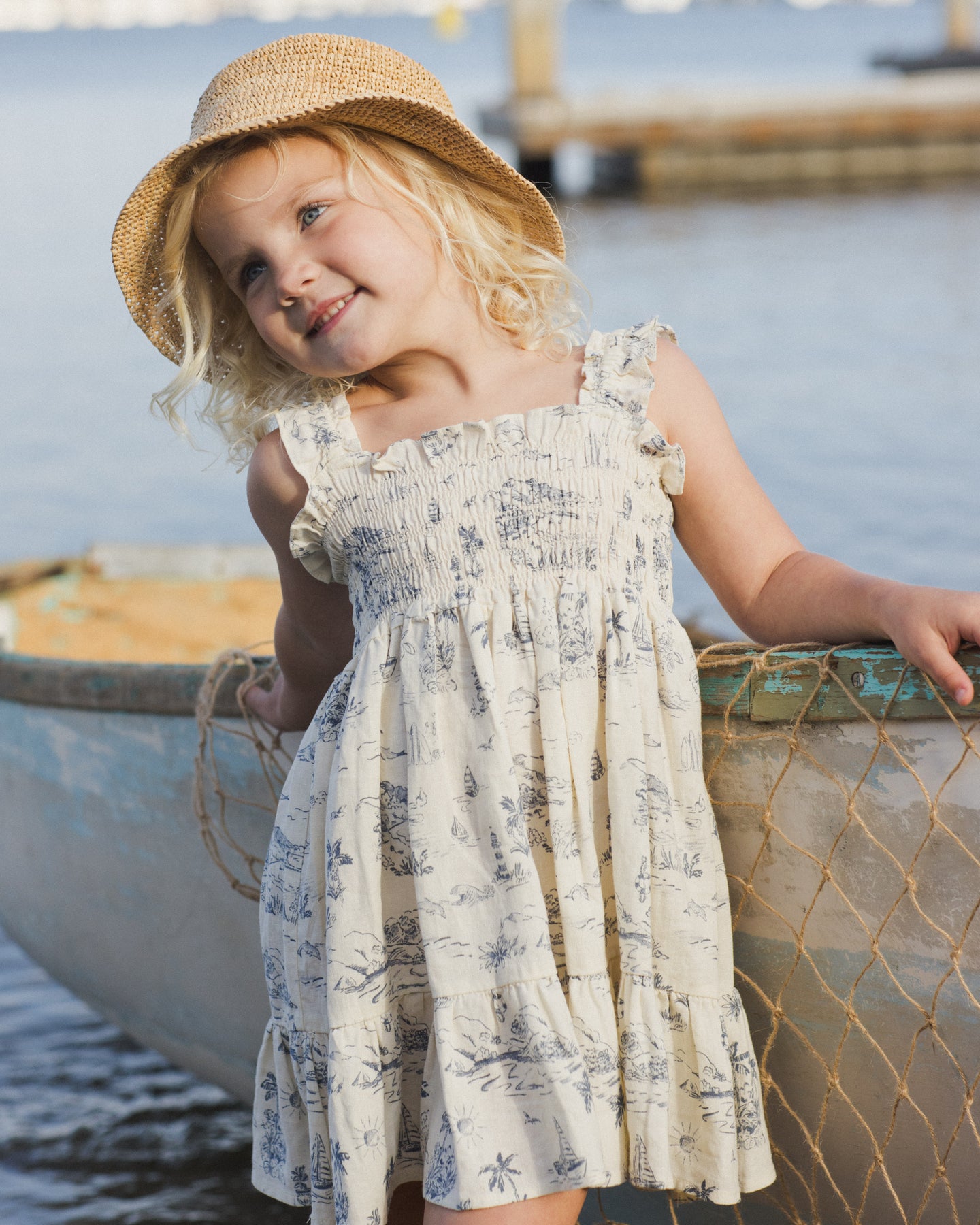With gathered elastic straps, smocked bodice and a gathered ruffle bottom tier, our Sutton Dress is the perfect spring time look.