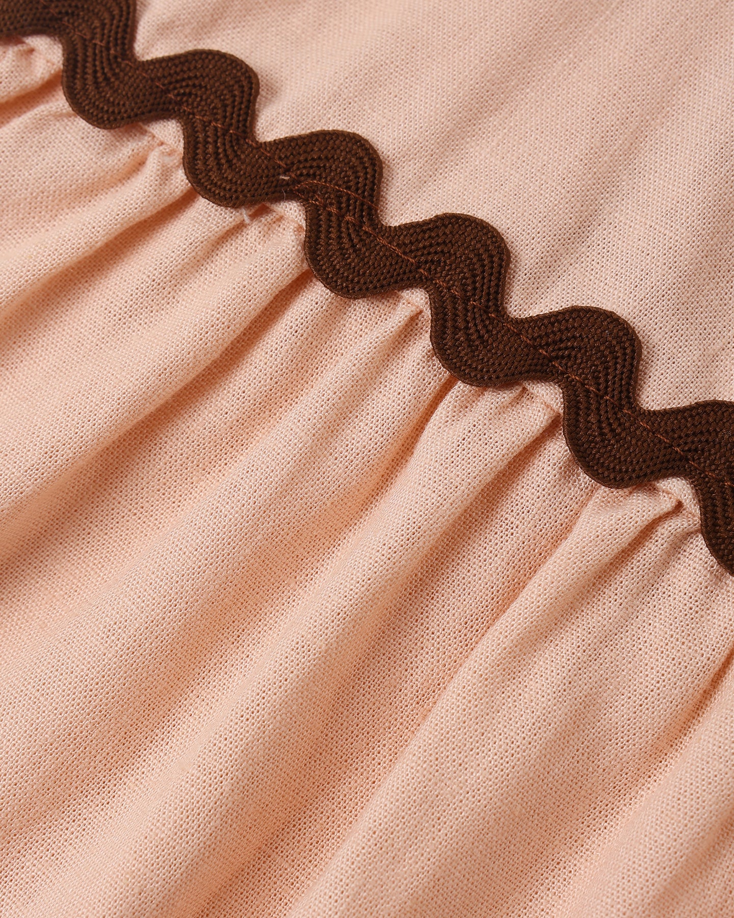 Featuring our ‘blush’ hue with 'chocolate' ric rac seams.