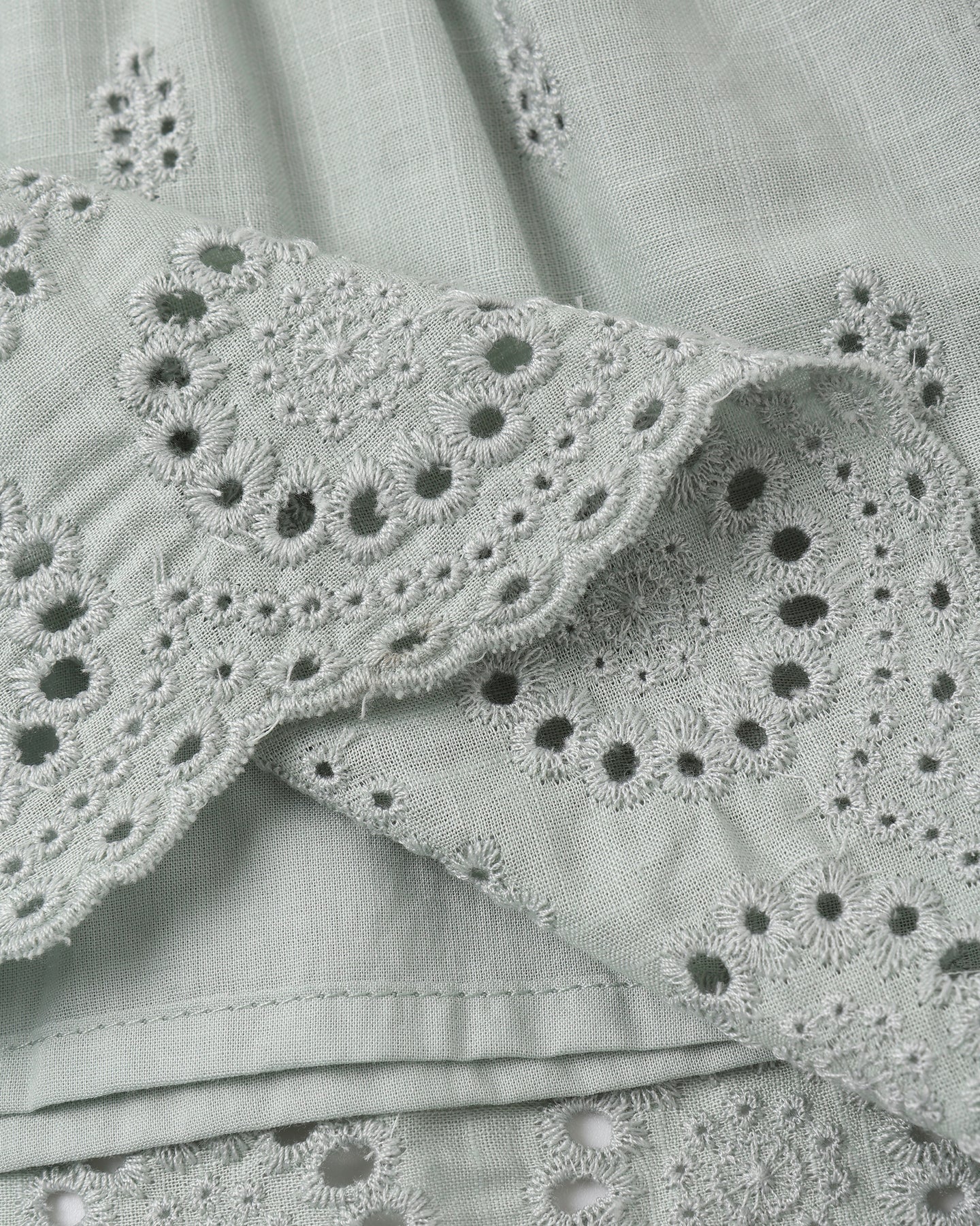 Featuring all-over bud eyelet embroidery on our 'seafoam' hue.