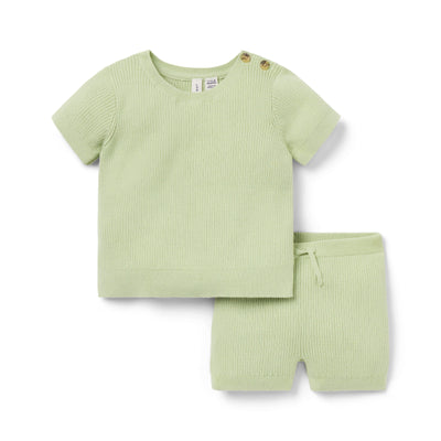 Janie and Jack Ribbed Short Sleeve Top And Short Set, Green