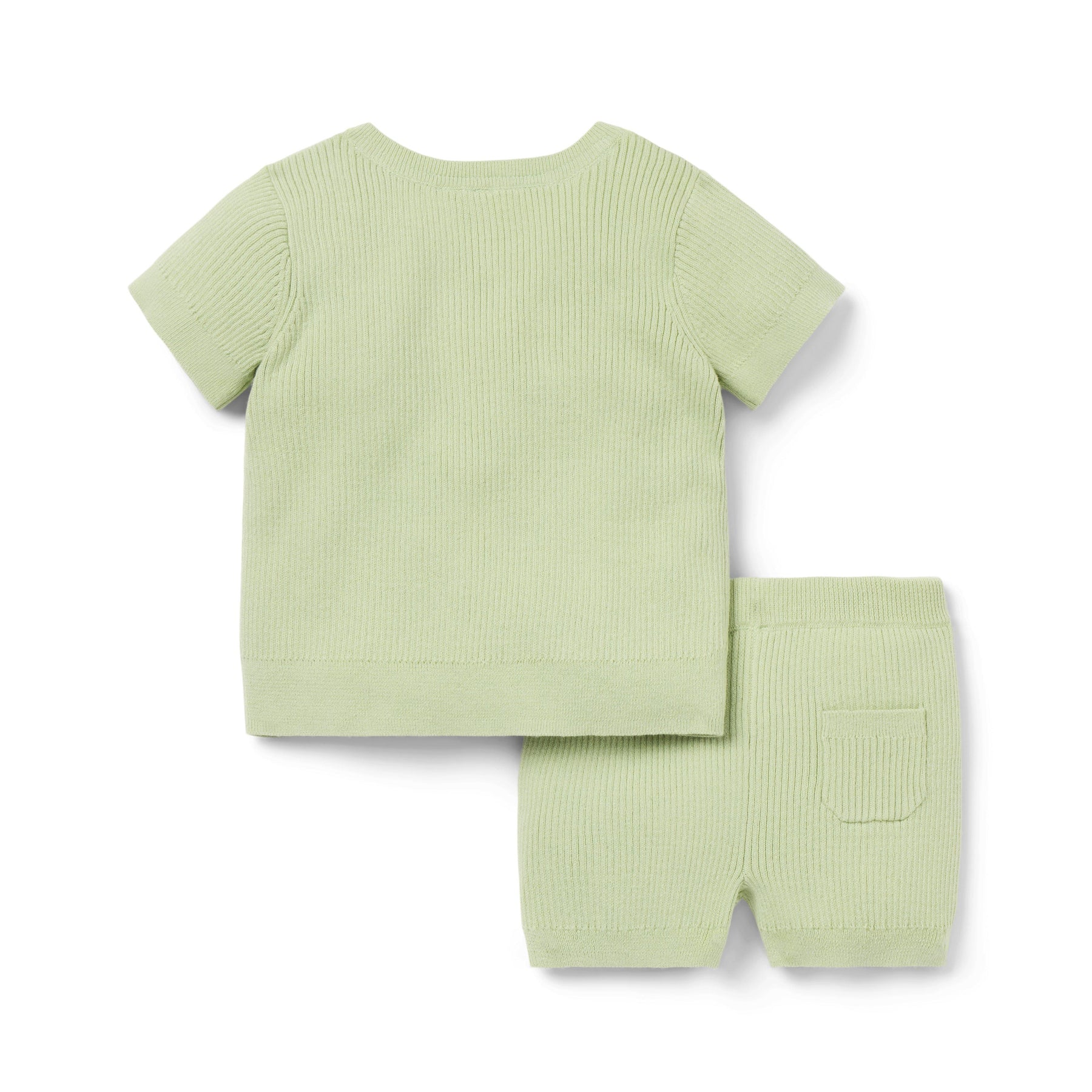 The perfect match for first moments? Our set in pure, soft cotton, featuring allover ribbed details, a bow at the waist and a little back pocket too.