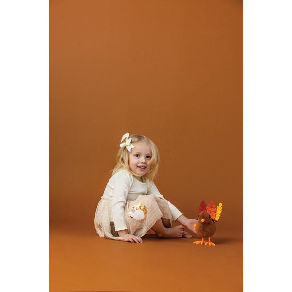 Delight your little one with the charming Turkey Tutu Toddler Dress, perfect for festive occasions and everyday play. This adorable dress features a soft cotton rib long sleeve top, ensuring comfort and warmth during cooler days. The neckline is adorned with a touch of gold lurex, adding a hint of sparkle and elegance. The standout feature is the enchanting mesh sequin tutu skirt, designed to twirl and shimmer with every movement, making your child feel like a star. Crafted with a blend of 91% cotton and 9% spandex for the body, it offers a snug yet flexible fit. The mesh is made from 100% polyester, while the lining combines 65% polyester and 35% cotton for added comfort. Available in a large size suitable for ages 4T-5T, this dress is a delightful addition to any toddler's wardrobe, combining style, comfort, and a touch of magic.
